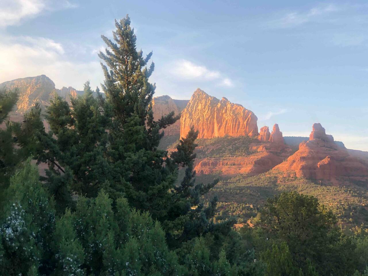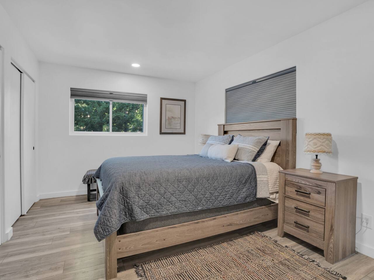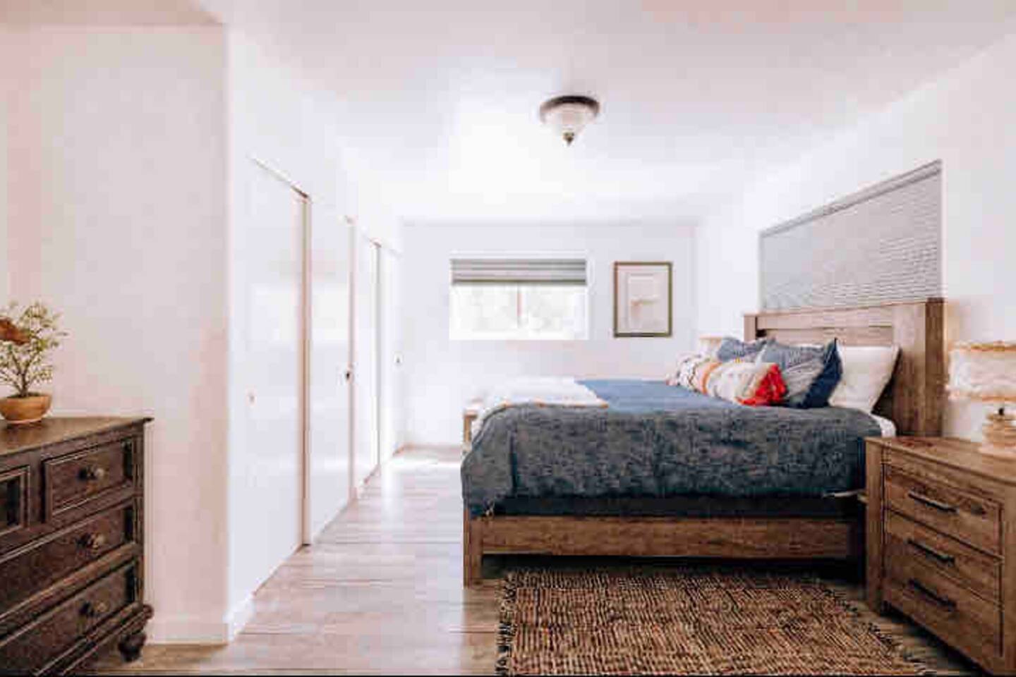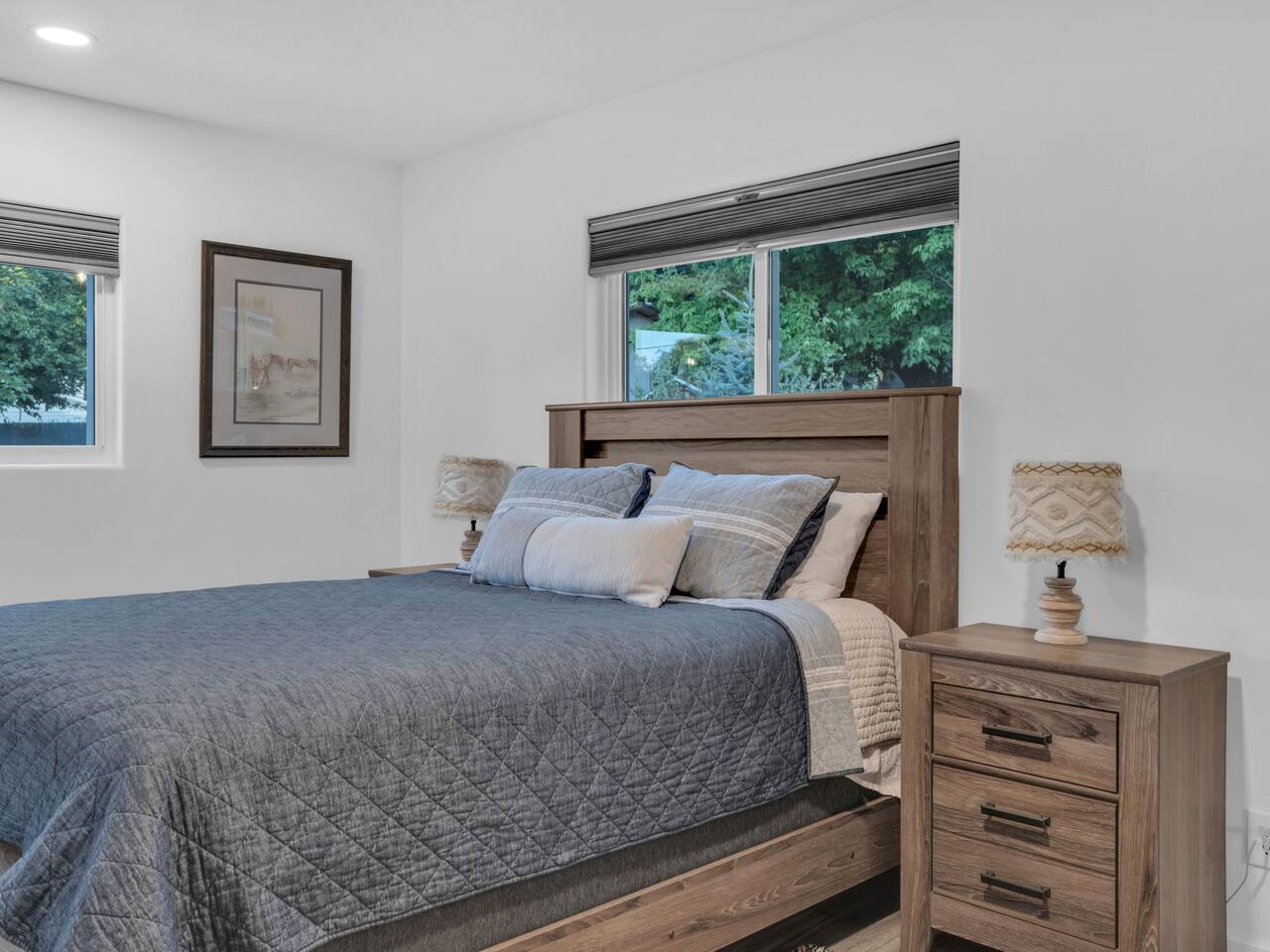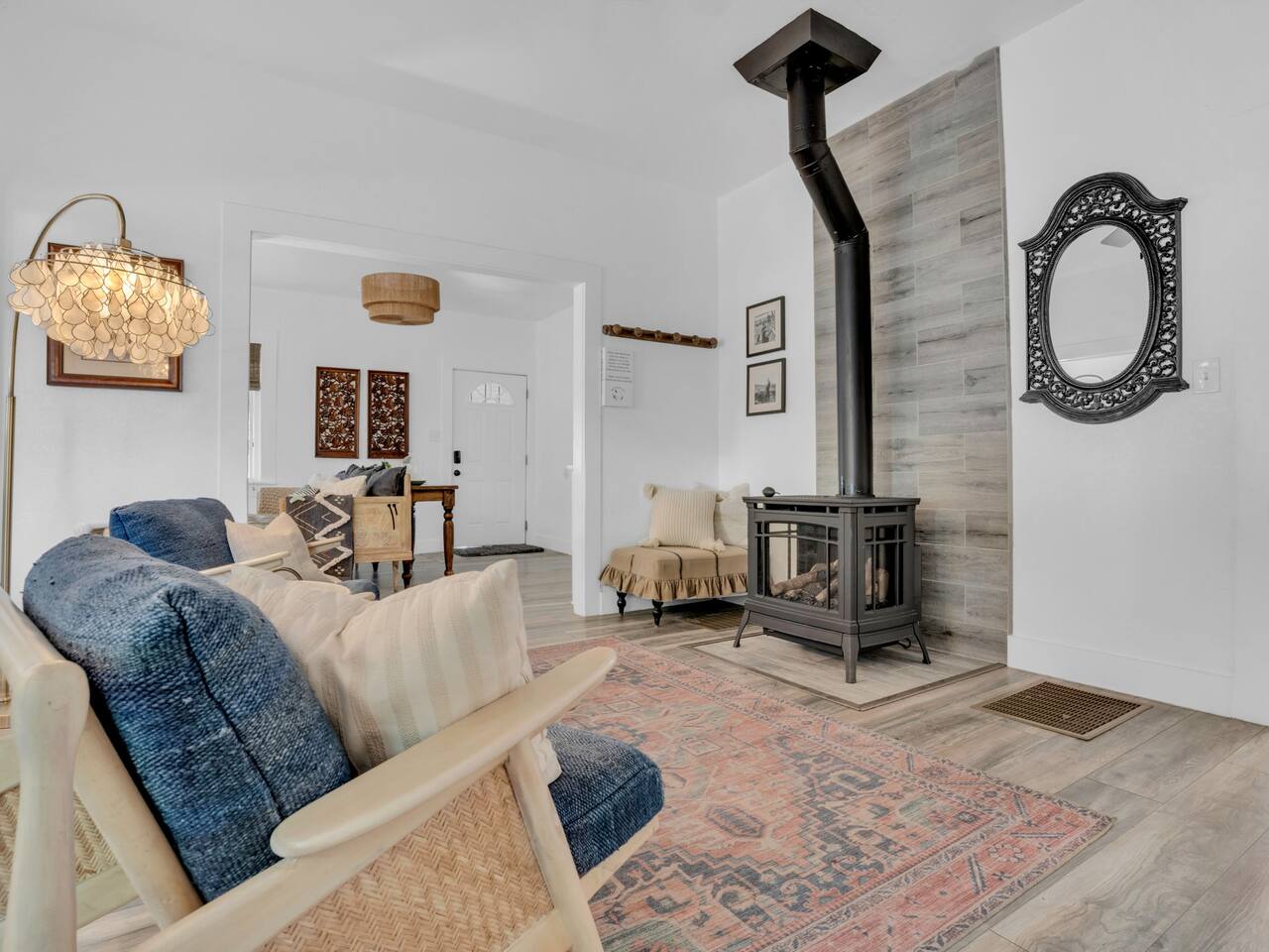 The stunning back yard is the star of this homestead. Completely revamped in 2020, the natural stone patio extends the living and entertaining space. A custom fire pit built into a rock boulder is the heart of this outdoor oasis. It is flanked by more natural boulder benches, a regulation sized corn hole court, outdoor dining area and so much more. Ambient lighting allows you to celebrate from day into night watching the star-filled nights of Arizona skies. We furnished this home in the coziest way possible and to be honest, it makes me feel like moving back to Arizona and moving in. It has great energy and is oh-so comfortable. I like to call the style mountain bohemian or boho chic. You could easily call it comfortable and cozy, spacious and serene, or family friendly. Located two short blocks from Route 66, you can walk to historic downtown Williams where you can dine and shop in the charming downtown. It's even walking distance to the Grand Canyon Railway. Mountain Digs was completely remodeled in 2019 with lots of room to spread out and enjoy your time in beautiful Northern Arizona. In addition to three bedrooms and two full bathrooms, it features large family and dining rooms. The large day bed in the living room includes a twin sized mattress and is super comfy for sleeping. The split floor plan allows great privacy for two couples who may be traveling together. The large living area is open to a beautiful dining and lounge area, great place to enjoy cocktails before dinner or morning coffee as you awaken to the cool pines of Northern Arizona. The front porch is beautifully inviting with a cushy outdoor sofa and occasional chairs. There's plenty of on-site parking, including space for an RV or Motor Home. Creating a mountain retreat for guests to love has been a passion project. We have spared no expense in making your stay away from home spectacular. We can’t wait to welcome you to our “nest of rest for those traveling west.”