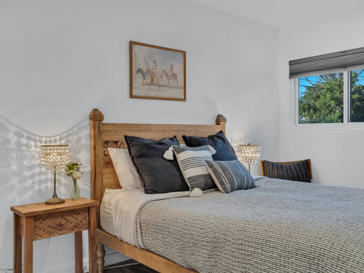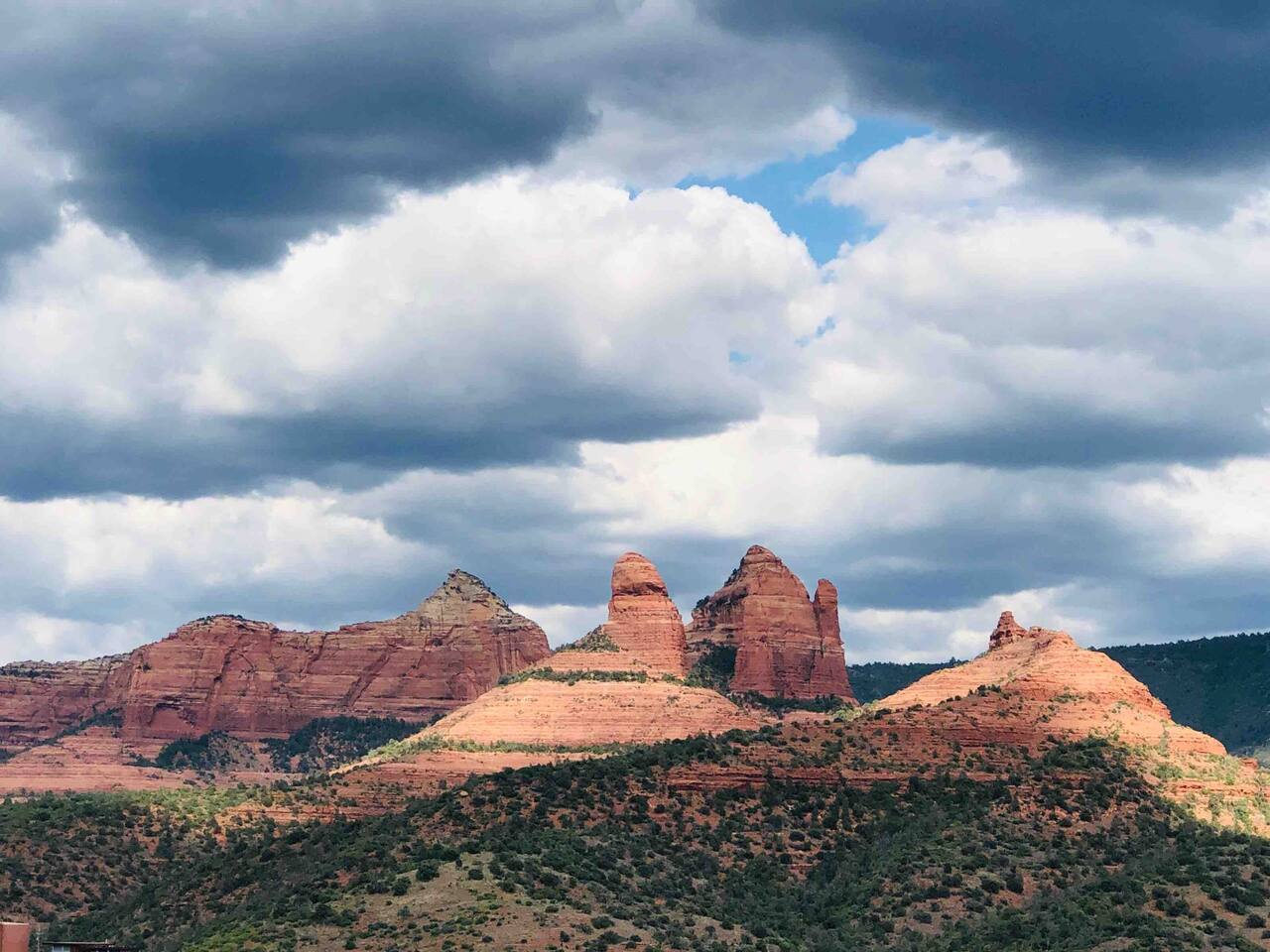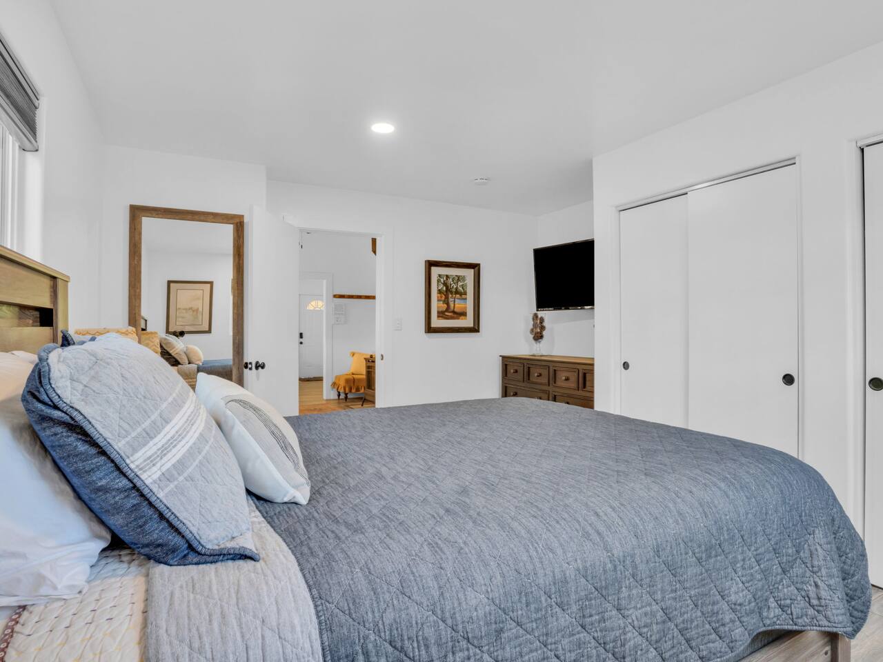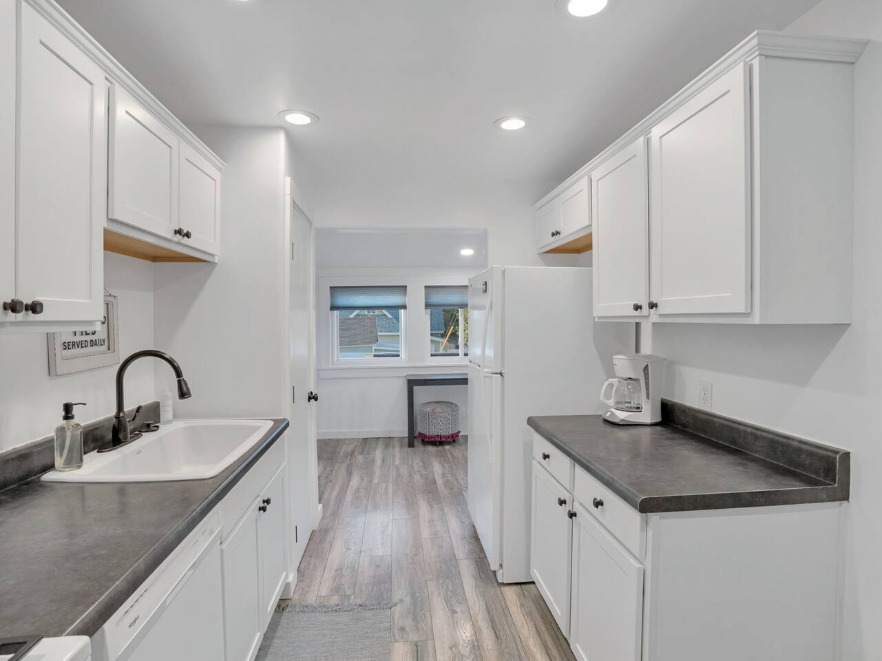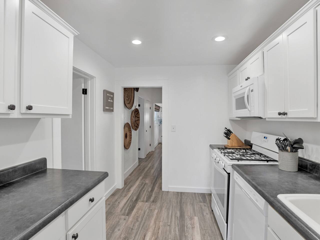 The stunning back yard is the star of this homestead. Completely revamped in 2020, the natural stone patio extends the living and entertaining space. A custom fire pit built into a rock boulder is the heart of this outdoor oasis. It is flanked by more natural boulder benches, a regulation sized corn hole court, outdoor dining area and so much more. Ambient lighting allows you to celebrate from day into night watching the star-filled nights of Arizona skies. We furnished this home in the coziest way possible and to be honest, it makes me feel like moving back to Arizona and moving in. It has great energy and is oh-so comfortable. I like to call the style mountain bohemian or boho chic. You could easily call it comfortable and cozy, spacious and serene, or family friendly. Located two short blocks from Route 66, you can walk to historic downtown Williams where you can dine and shop in the charming downtown. It's even walking distance to the Grand Canyon Railway. Mountain Digs was completely remodeled in 2019 with lots of room to spread out and enjoy your time in beautiful Northern Arizona. In addition to three bedrooms and two full bathrooms, it features large family and dining rooms. The large day bed in the living room includes a twin sized mattress and is super comfy for sleeping. The split floor plan allows great privacy for two couples who may be traveling together. The large living area is open to a beautiful dining and lounge area, great place to enjoy cocktails before dinner or morning coffee as you awaken to the cool pines of Northern Arizona. The front porch is beautifully inviting with a cushy outdoor sofa and occasional chairs. There's plenty of on-site parking, including space for an RV or Motor Home. Creating a mountain retreat for guests to love has been a passion project. We have spared no expense in making your stay away from home spectacular. We can’t wait to welcome you to our “nest of rest for those traveling west.”